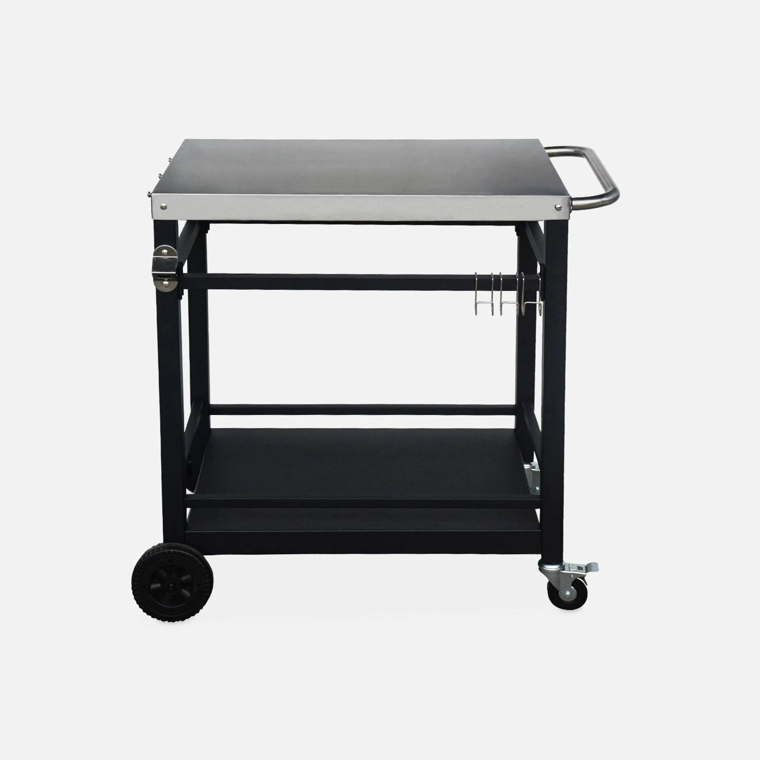 Cette jolie desserte au design intemporel en acier noir est parfaite pour votre jardin ou balcon. Ses 3 crochets vous permettent de placer torchons et ustensiles de cuisine lors de vos soirées plancha entre amis ou en famille. Sur son plateau supérieur, vous pourrez y mettre votre plancha ou tous vos aliments. C’est vous qui décidez grâce à cette desserte ! Quant à sa partie inférieure, vous pourrez y mettre assiettes, plats ou encore bonbonne de gaz pour votre plancha ! Placez un moment convivial grâce à Colbert !