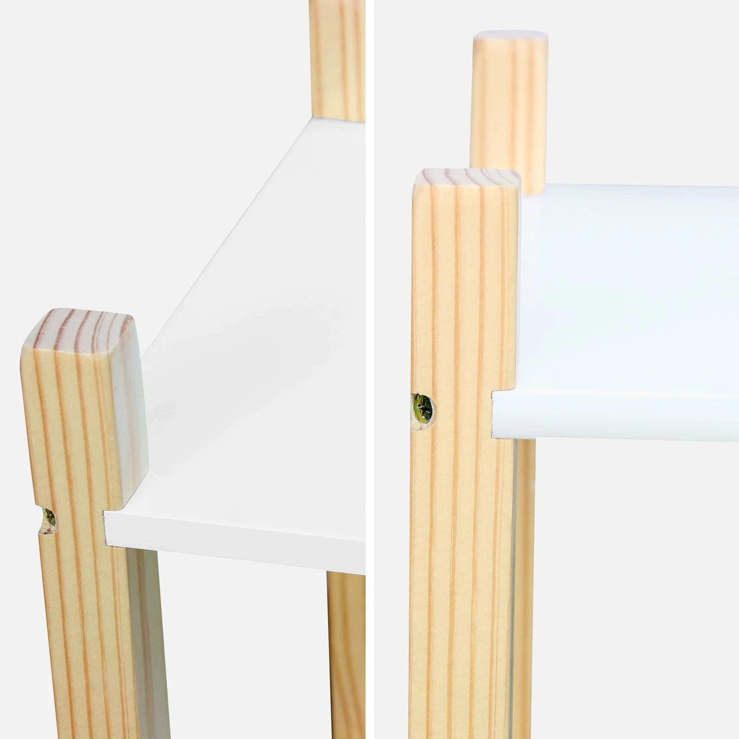 Cette bibliothèque habillée de blanc et de bois massif plaira beaucoup à votre enfant. Son design moderne et naturel en font un meuble sobre et esthétique qui aura parfaitement sa place dans les plus jolies chambres d’enfant. La structure en pin naturel encadre plusieurs étagères ouvertes et blanches, supportant chacune jusqu’à 10 kilos, ainsi que d’un rangement fermé grâce aux deux portes coulissantes. Cette bibliothèque peut accueillir les livres de votre enfant mais aussi ses peluches adorées ou ses vêtements.