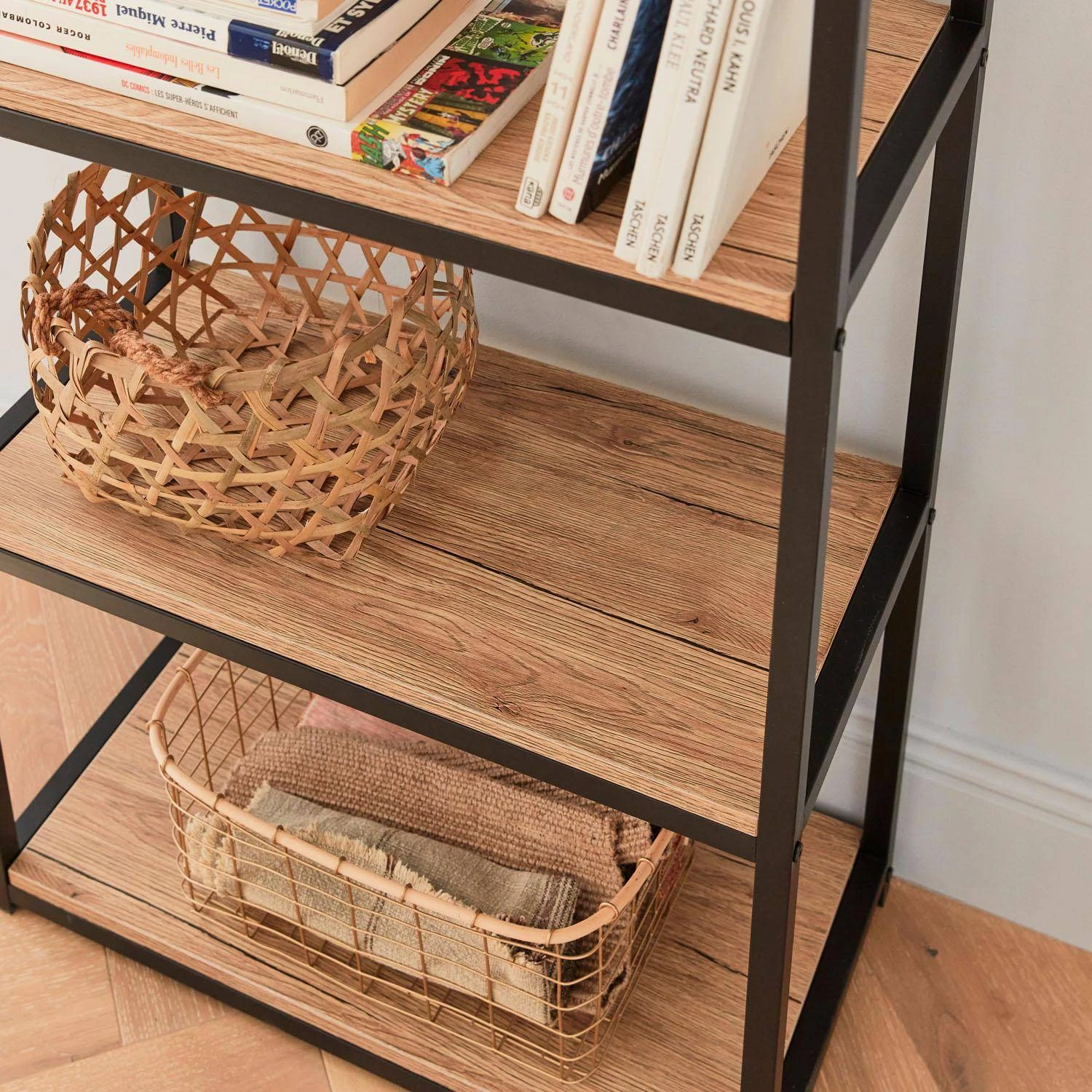 Cette étagère est le moyen idéal d’ajouter une touche loft à votre intérieur. La combinaison du métal et du décor bois lui confère un look élégant et intemporel qui s’intègre parfaitement dans n’importe quelle pièce. Les lignes droites et le design simple font de cette étagère un must-have pour toute maison.