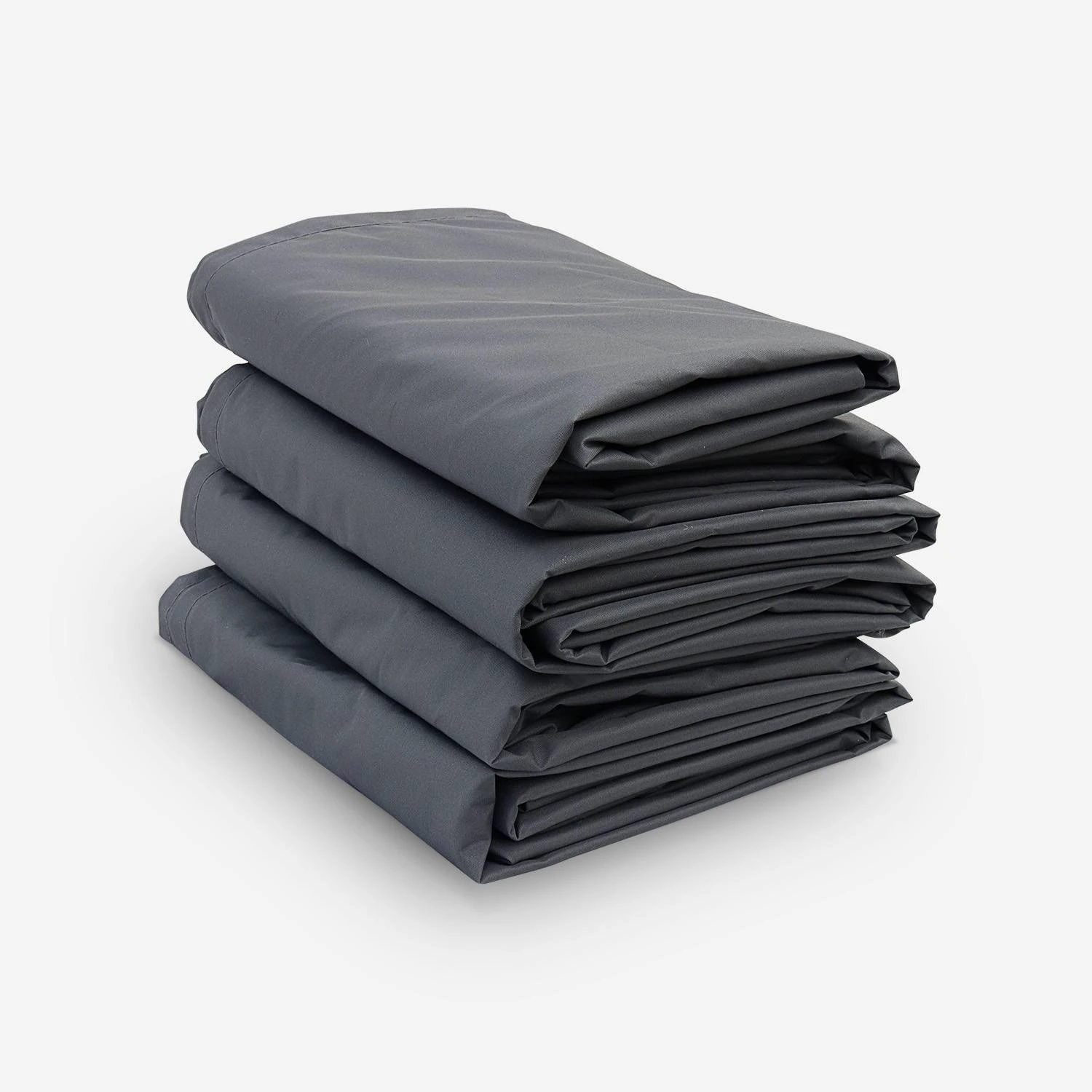 Protégez votre salon de jardin lorsque vous ne l’utilisez pas pour allonger sa durée de vie. Ces quatre housses sont en polyester avec un revêtement en polyamide. Déperlantes et imperméables grâce à l’enduction PA, elles préservent votre ensemble de jardin de la pluie, de la poussière et du soleil. Cela évite l’usure et les dégradations liées aux intempéries. Pratiques, ces housses traitées anti UV sont dotées d’un cordon de serrage avec œillets intégrés. Ce cordon est inséré dans l’ourlet et il ressort dans les angles, cela permet de maintenir les housses sur le salon de jardin. Deux aérateurs placés sur chaque housse empêchent la condensation. L’air libre circule également par le bas. Ainsi, les risques de moisissures sont évités.