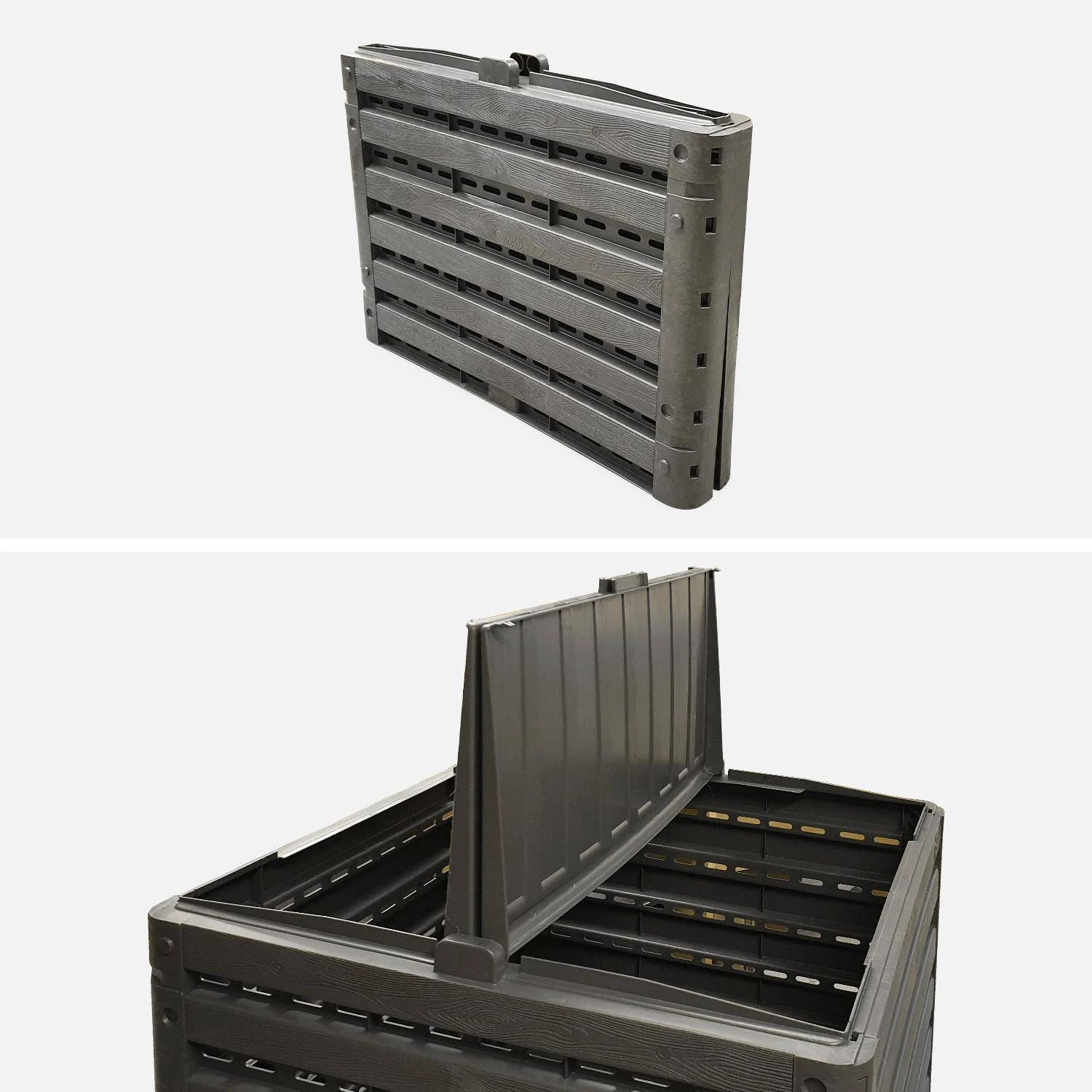 Ces composteurs de 400L sont conçus en plastique recyclé, imitation bois pour un aspect plus naturel. Ils sont équipés d’une double ouverture qui facilite le remplissage, de couvercles avec poignée et d’un fond pour faciliter le ratissage. La trappe latérale qui permet de retirer facilement le compost est dotée de poignée et de prises d’air pour permettre une bonne aération et produire un meilleur humus.