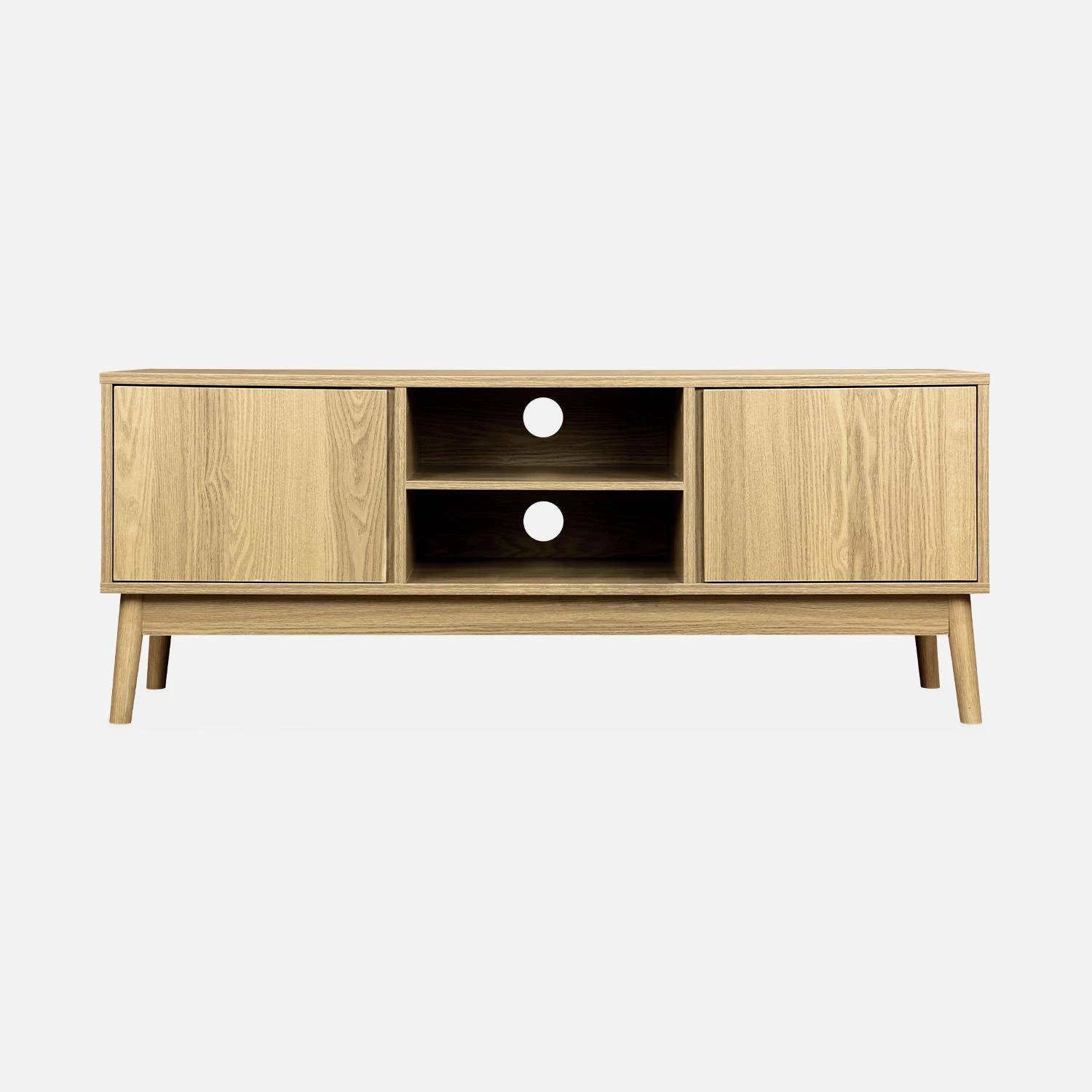 Avec ses 2 niches et ses 2 niveaux, ce meuble TV vous offre un bel espace de rangement, idéal pour ranger vos accessoires high tech en toute discrétion. Pratique, son fond est même doté de deux ouvertures, utiles pour faire passer vos câbles. Une chose est sûre, le meuble TV Dune deviendra vite votre nouvel allié, pour des soirées TV réussies.