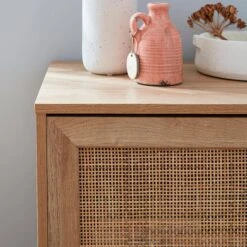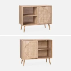 Buffet Scandinave Effet Bois Et Cannage 1 Porte 80 Cm Couleur : Naturel
