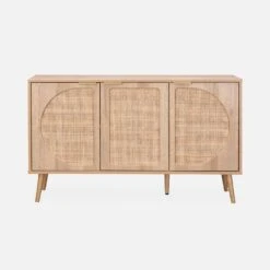 Buffet Scandinave Décor Bois Et Cannage Arrondis 3 Portes 120 Cm