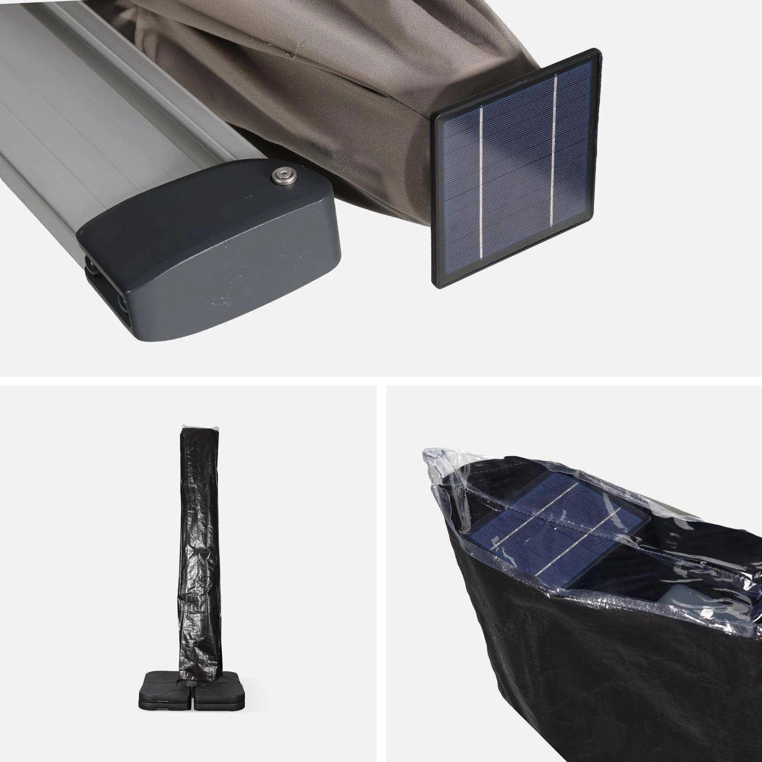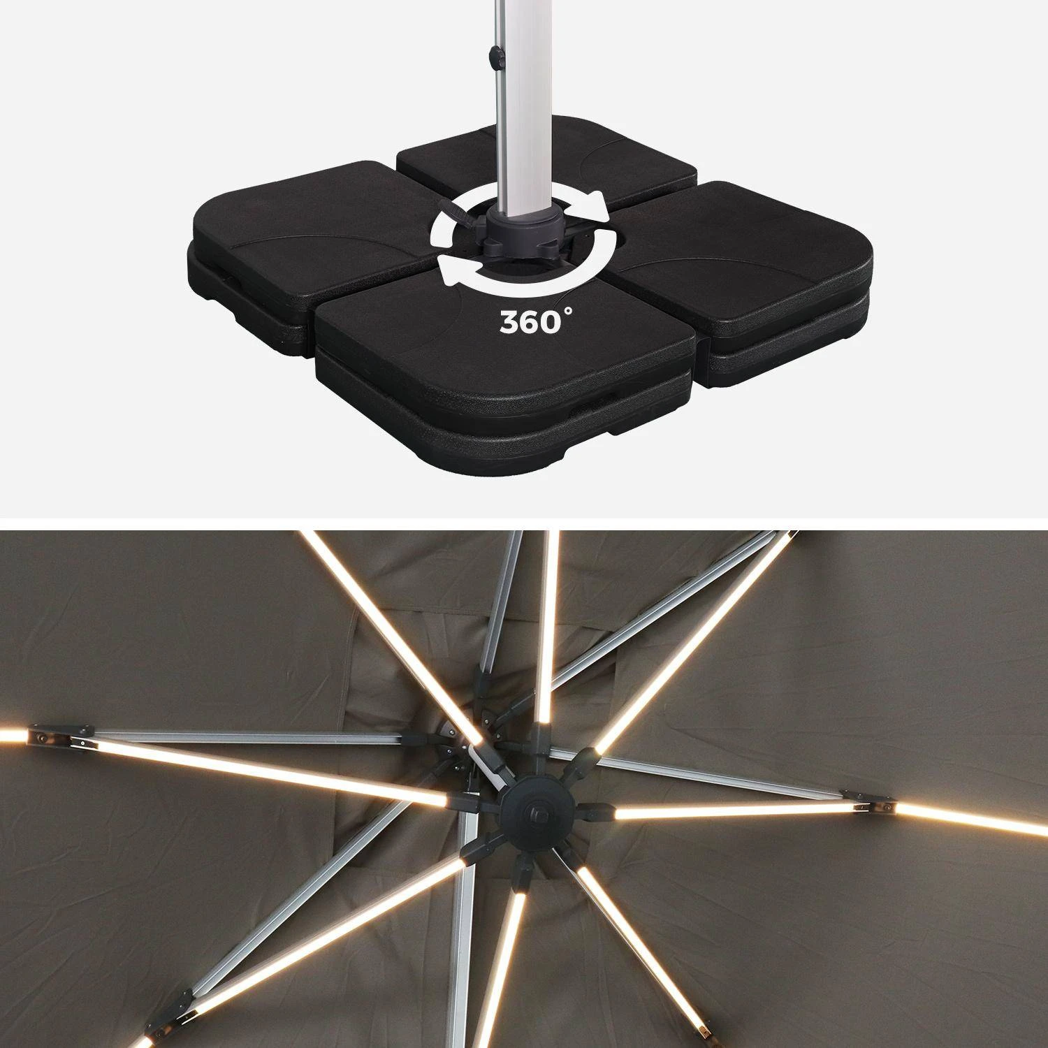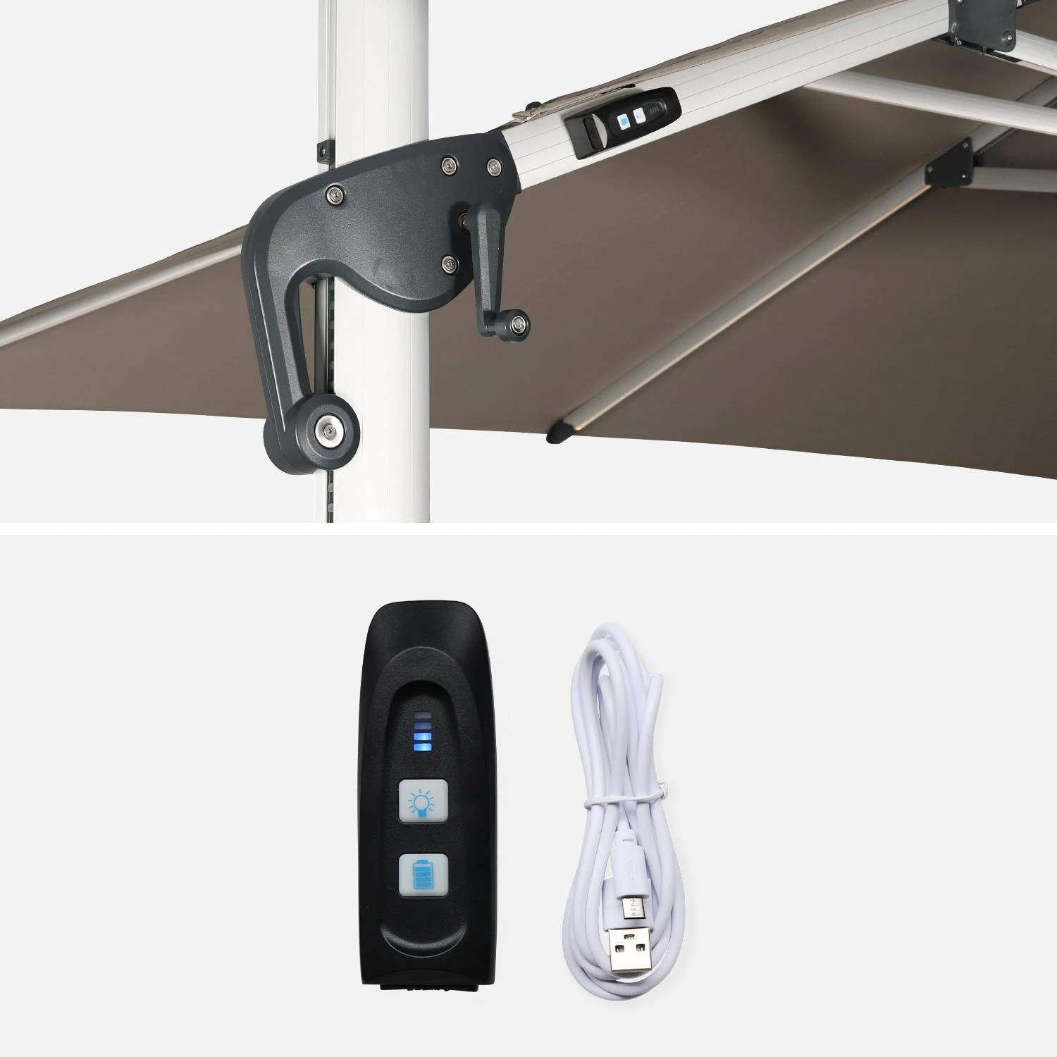 Grâce à ses bandes Led situées sur les baleines vous pourrez profiter de votre terrasse ou de votre jardin même à la nuit tombée. Lorsqu’il est éclairé, le parasol crée une atmosphère unique et chaleureuse. ll vous éclairera pendant 4 heures grâce aux led situées sur les baleines. La batterie se charge automatiquement grâce au chargeur solaire ou grâce à un chargeur micro USB.