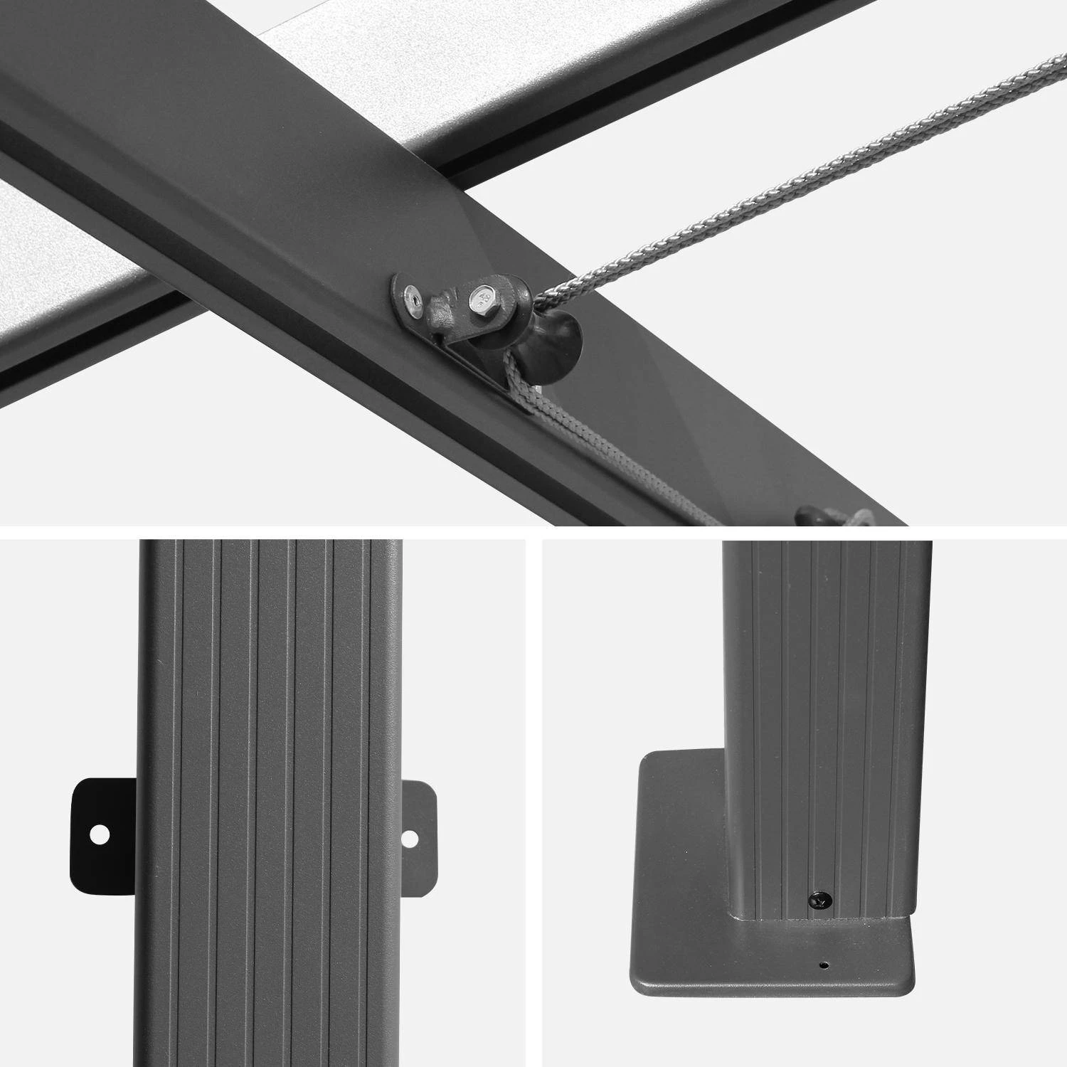 Avec la pergola 3 x 4m Murum, vous pourrez passer des moments conviviaux à l’extérieur, à l’abri du soleil. Cette pergola, qui s’adosse à un mur, est munie d’une toile de toit rétractable pour que vous puissiez profiter de soleil, si vous le souhaitez. La toile est montée sur rails avec un système de poulie. Il est on ne peut plus facile de passer la toile de la position ouverte à fermée. Il suffit de tirer la corde pour la faire coulisser. Une lanière à bande velcro maintient la toile repliée.