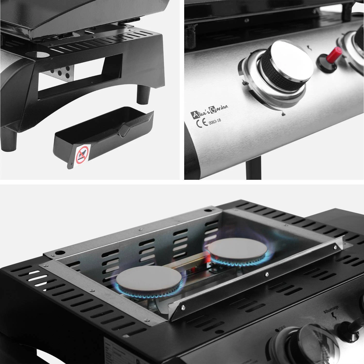 Pratique, la plancha Porthos s’allume rapidement par piézo. Sa plaque de cuisson et le récupérateur de graisses amovible sous forme de tiroir facilitent son nettoyage.