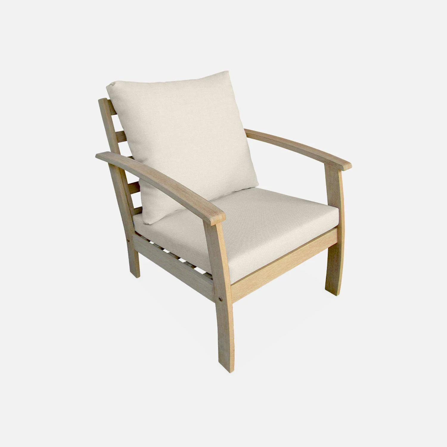 Conçu en acacia, ce salon de jardin a un style résolument moderne et élégant. Son design est épuré, cela lui permet de s’intégrer aussi bien en intérieur qu’en extérieur.