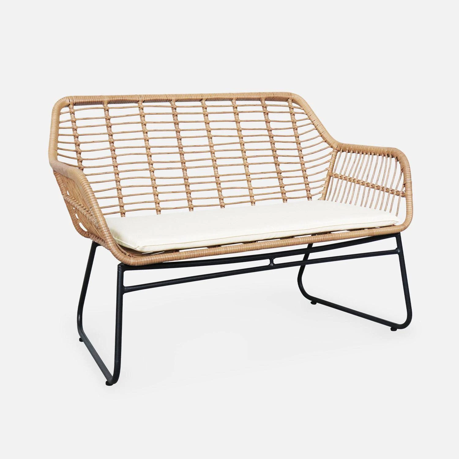 Un salon de jardin au style colonial, en bi-matière. Une résine tressée beige style rotin, pour une touche naturelle dans votre décoration et une structure en métal galvanisé noir apporte quant à elle un mix and match moderne. Le salon de jardin est composé de deux fauteuils, d’un canapé ainsi que d’une table rectangulaire avec un verre trempé de 5 mm, d’une résistance 5 fois plus élevée que le verre traditionnel.
