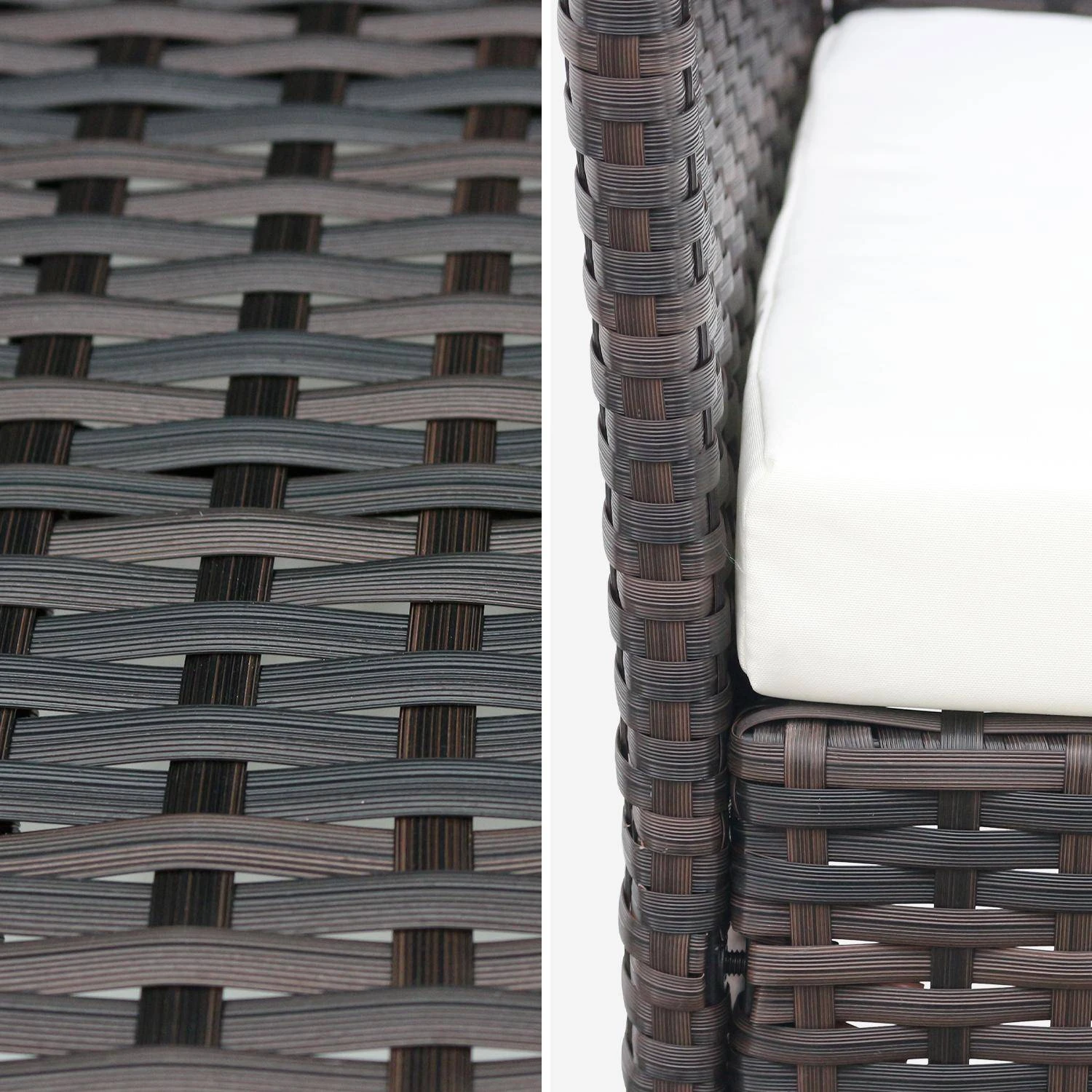 sweeek sélectionne avec attention la qualité de la matière choisie pour le tressage. De ce fait, la durée de vie du Moltès est exceptionnelle ! La résine tressée sweeek supporte les rayons du soleil et les intempéries (neige/ pluie / eaux salées). Les coussins sont déhoussables et résistants à l’eau. Pour empêcher la rouille de se développer, les structures métalliques sont en acier galvanisé recouvert de peinture époxy. Le plateau en verre de la table basse est en verre trempé dépoli de 5mm d’épaisseur. C’est un verre 5 fois plus résistant que le verre traditionnel !
