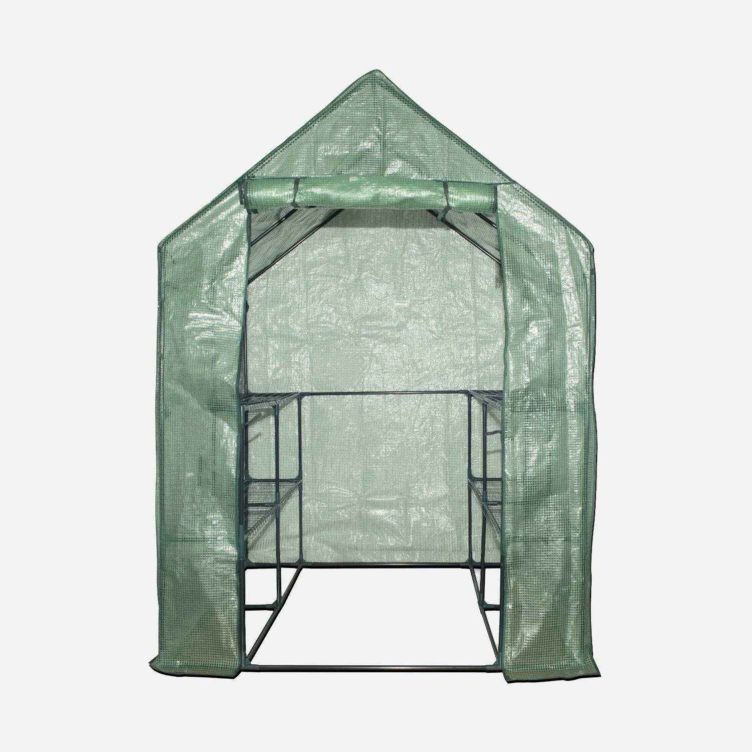Cette serre de jardin est idéale pour cultiver vos fruits et légumes. Elle crée un environnement favorable aux cultures en les protégeant en hiver et en favorisant leur croissance durant la belle saison. L’aération est essentielle pour les plantes, la serre est donc munie d’une porte enroulable qui donne accès aux cultures aisément et qui renouvelle l’air également. Cette dernière est à fermeture éclair. Elle se roule et s’attache grâce à des rubans. Pratique, la serre possède 8 étagères de chaque côté, composées de 1 tablette en acier chacune. Cela optimise le stockage de vos cultures et de votre matériel de jardinage. Cette serre est également livrée avec un kit d’ancrage.